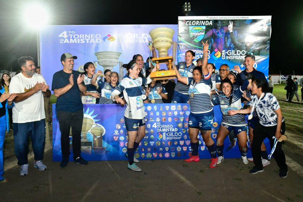 La “Copa Gildo Insfrán”, destacado trofeo elaborado por manos de artesanos y artesanas locales, símbolo de identidad del pueblo formoseño, les fue otorgado por el doctor Eber Solís, Caniza, Romay y De la Rosa, cerrando así esta nueva edición del certamen de fútbol femenino, tras tres jornadas intensas de partidos en la segunda ciudad.