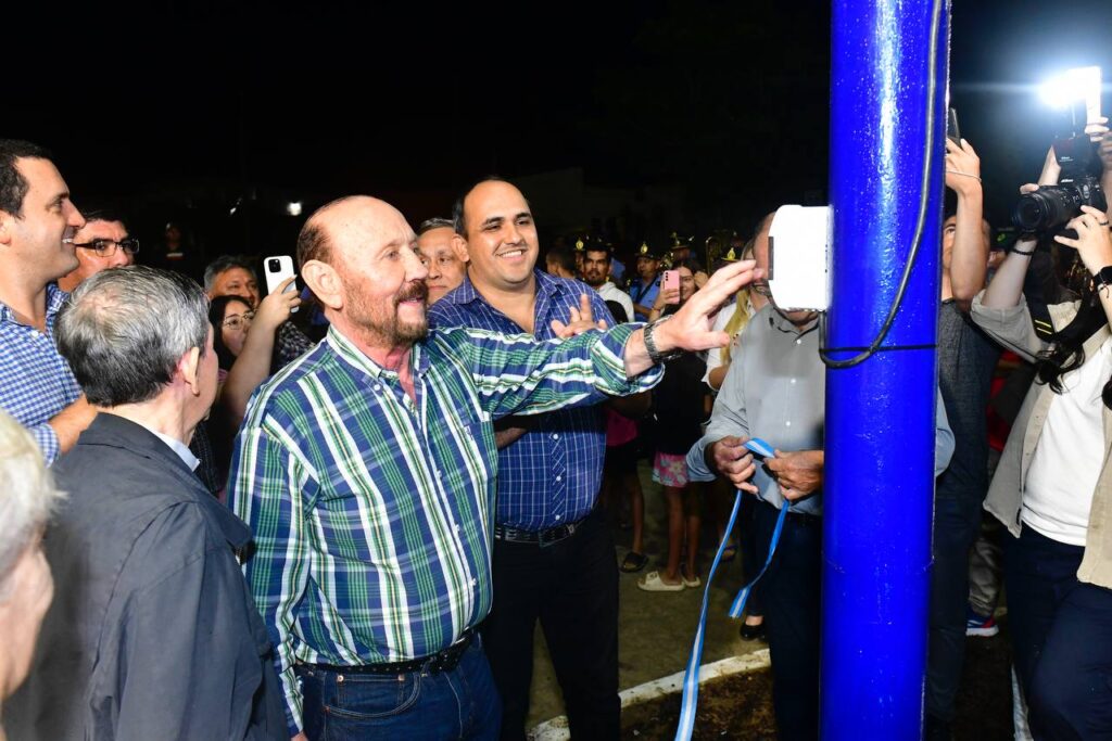 Luego de entregar viviendas en Tres Lagunas, el gobernador Gildo Infrán se trasladó a General Belgrano para encabezar la inauguración de la refacción integral del alumbrado público en la intersección de las avenidas Libertador, Juan Domingo Perón y Loncharich de la mencionada comunidad.